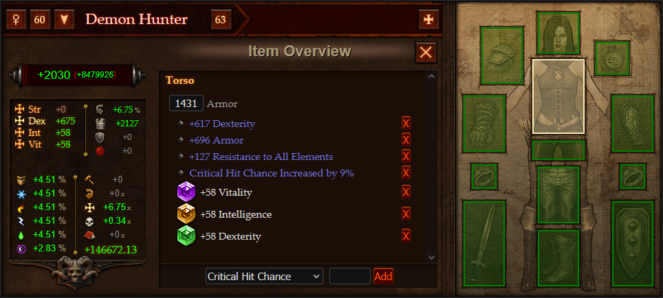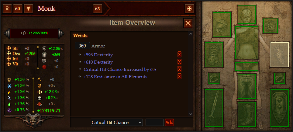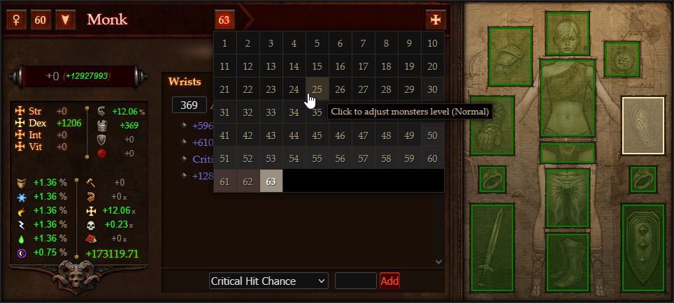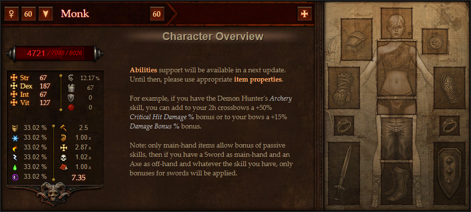 Simulateur d'équipement pour Diablo 3, permettant de calculer l'impact des attributs sur les statistiques du héros (points de vie, dégâts...)