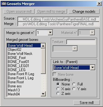 - Éditeur de géométrie (sélection des variations du modèle à importer)