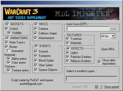 Script 3dsMax avec interface graphique permettant d'importer les modèles 3D du jeu Warcraft 3.